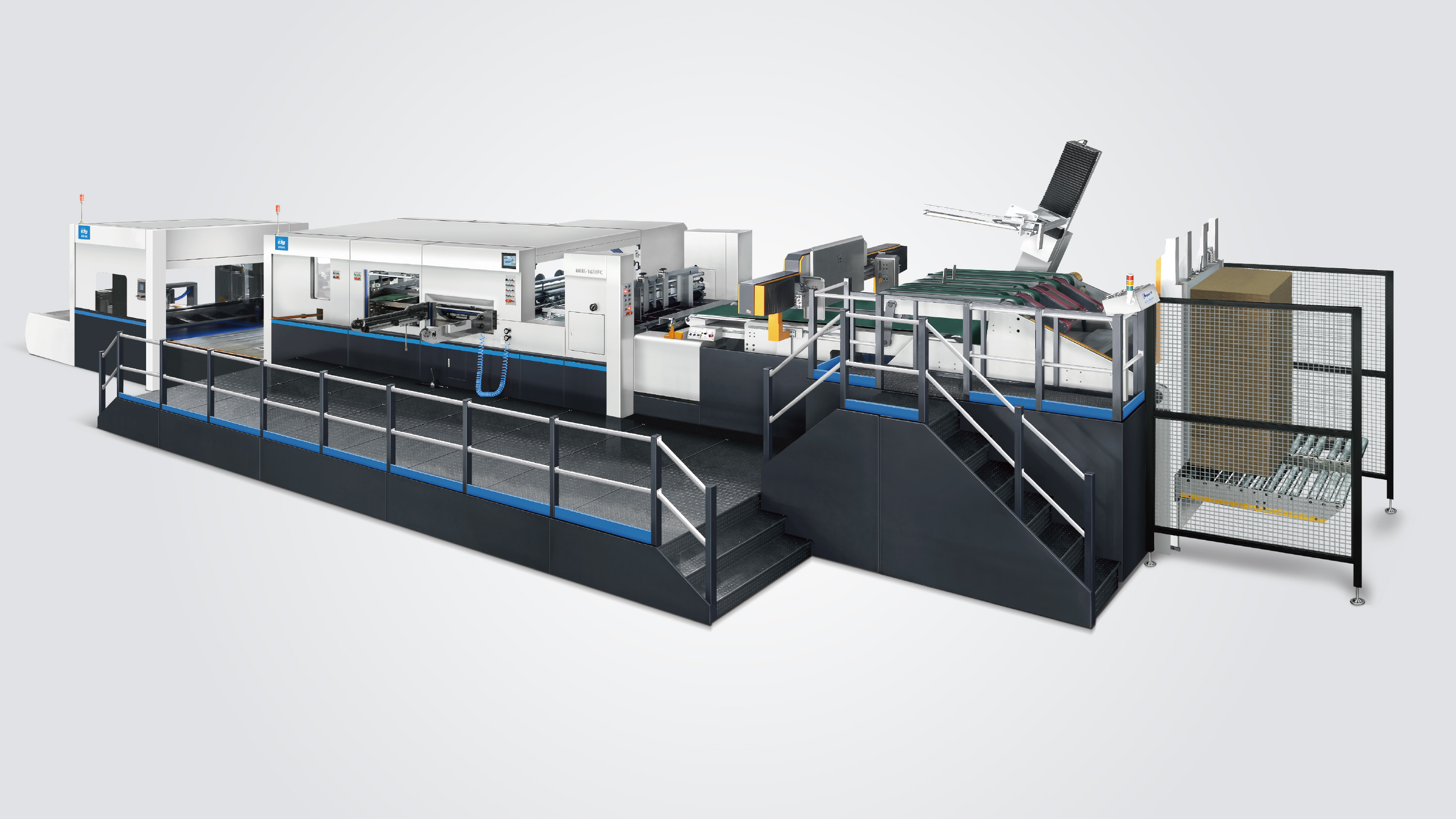 ? ? ? ? 在為期五天的展會現場,大源共展出了4臺全新升級的設備,包括MHK-3S1050TTRC多機組叁工位高速自動雙燙金熱壓清廢模切機(全球首發)、MHK-1650FC全自動帶清廢平壓平模切機聯動生產線、SMC-1500ZH自動接紙不停機換托盤雙螺旋卷筒紙分切機、BHT-1060SCE全自動平壓平模切全清廢分品機等。