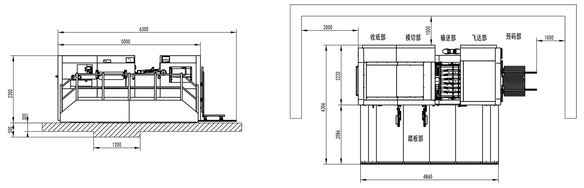 | 整機尺寸 | 6300×4306×2350mm (L×W×H) (長含預上紙軌道;寬含腳踏板) |