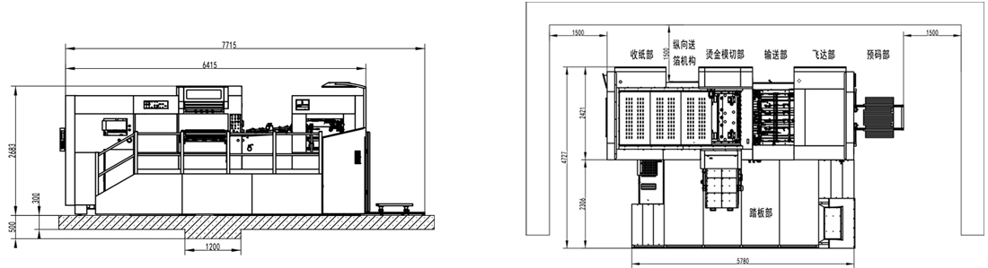 | 整機(jī)尺寸(含板框預(yù)裝架) | 7715×5627×2683mm(長含預(yù)上紙軌道;寬含腳踏板) |