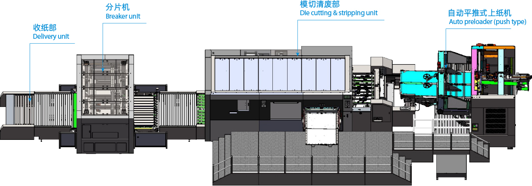 使生產(chǎn)設(shè)備產(chǎn)能達到最大化。這種聯(lián)線的組合方式是目前在國內(nèi)外市場上使用的比較多,而且穩(wěn)定的模切機聯(lián)線方式,是將全自動模切機的送紙部配上全自動送紙機來替代人工搬紙從而降低搬紙人員的勞動強度,提高送紙效率,在模切機的收紙部配上全自動分片機將多拼板的產(chǎn)品自動分片,減少人工分紙勞動成本,這也是近幾年很多紙箱包裝企業(yè)所尋求的新型作業(yè)模式,最大的優(yōu)點是可以針對客戶不同的要求、不同的產(chǎn)品工藝、不同的模切后道產(chǎn)品處理方式來定制設(shè)計。