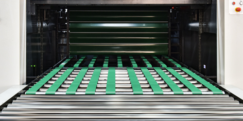 ● 特殊的聚乙脂送紙膠輪配合柵欄式托紙架和氣墊確保厚重翹曲紙板輸送順暢和紙板的精準到位。