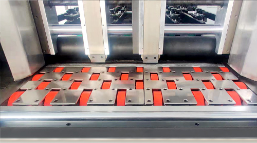● 特殊的聚乙脂送紙膠輪配合柵欄式托紙架和氣墊確保厚重翹曲紙板輸送順暢和紙板的精準到位。