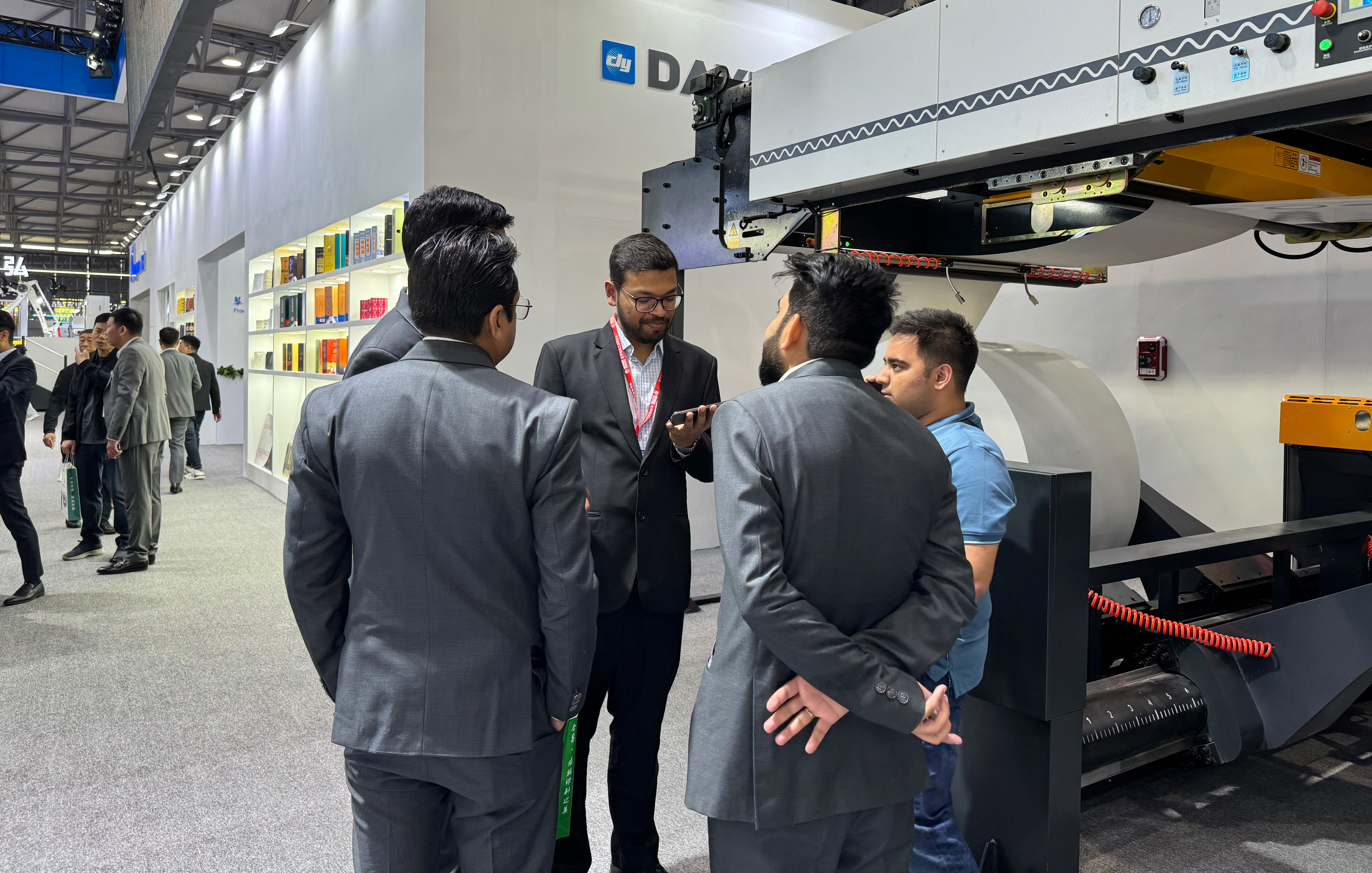 As an innovator in multi-unit hot foil stamping, deep embossing, and die cutting technology, Dayuan instantly became the talk of the show with the world premiere of its MHK-3S920TTT TRIOPRESS Hot Foil Stamping & Die Cutting Machine. Featuring cutting-edge design, the machine attracted numerous new and returning clients, who stopped by for in-depth inquiries.