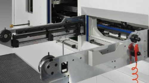 ● Front gauge non-stop back and forth adjustable to accommodate variation in gripper margin.