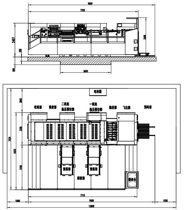 | Machine Dimensions(Including Die Preloader) | 9009×7424×2658mm (L×W×H) (L: paper prepared track included, W: platform included) |